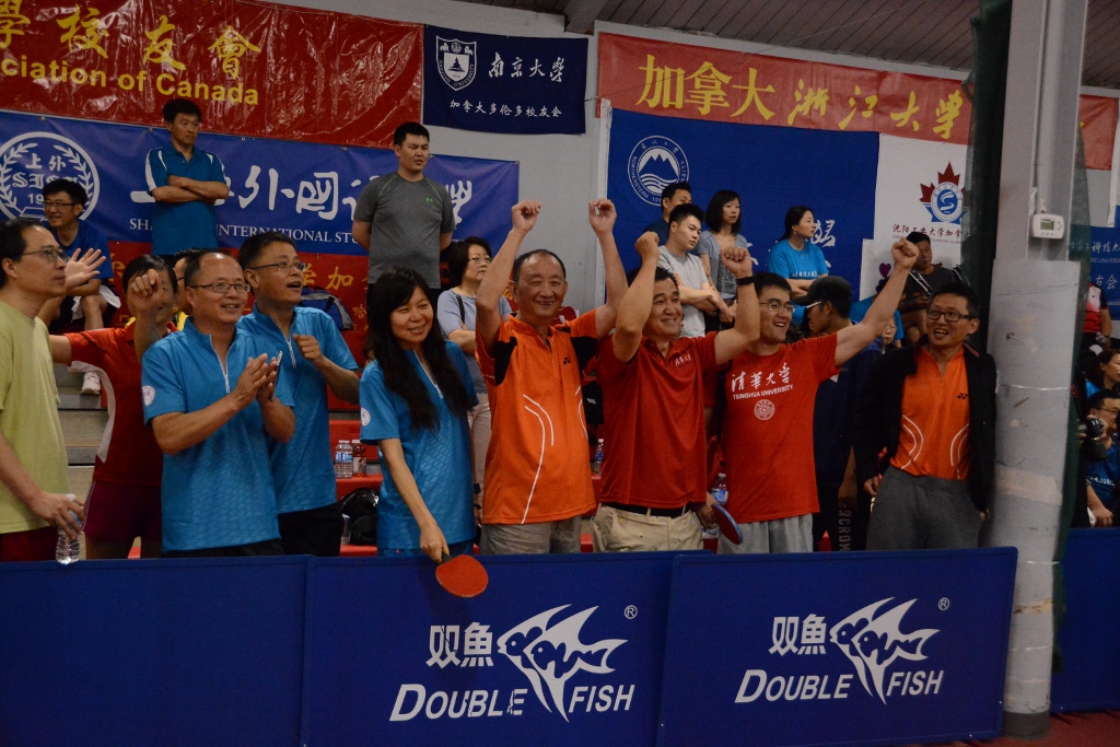 为加拿大“高校杯”乒乓球友谊赛于7月15日和16日在万锦的室内乒乓球馆进行。此次赛事由四川大学加拿大校友会主办,共有51个中国高校加拿大校友会参加,人数多达255人。南安省清华校友会派出两支队伍参赛,其中一队由队长胡晟斐(女,自动化89)带队,二队由队长赵勗罡 (电子工程91)率领。二天528场比赛,规模空前,书写了加拿大最大规模乒乓球团体比赛的历史。最后,清华1队获得了第五名。清华2队也赛出了风格和水平。整个赛事最为引人注目的队员是清华二队82岁的金其莹学长(电机54)。他不但身体灵活,而且球技精湛,丝毫不输年轻队员,并在正式比赛后获邀参加了表演赛,让广大校友们真正体会到了什么是“无体育,不清华”的精神。