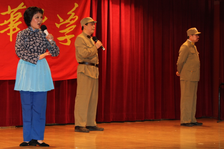 红遍网络的歌曲《妈呀中国》的词作者计天颖这次和女儿合唱了一曲《美丽的神话》,歌声优美动听,极富感染力,让观众听得如醉如痴。很多观众都看过去年中国最流行的“中国好声音”节目,晚会特推出了“清华好声音”。每位“参赛”歌手的实力都不俗,他们演唱的《春天里》和《我爱你中国》等歌曲让“临时评委”们频频转身,让观众们大声喝彩。就是真的四位好声音评委在场,相信他们也会为清华校友中有这样的好声音而转身。地方戏曲联唱中的京剧《智斗》一段,三位演员不但一身行头专业,那一腔一式更是专业老道,让台下叫好不断。
