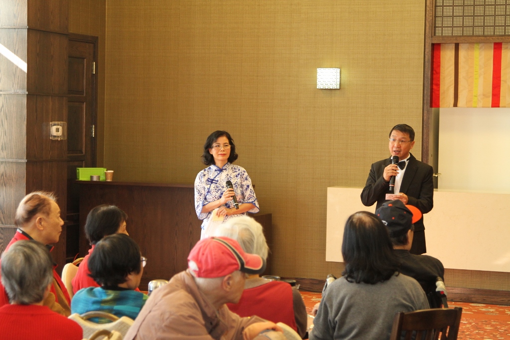 考虑到这里的老人很多讲粤语,艺术团特意安排谭汀校友和李宝松校友分别担任粤语和国语主持。