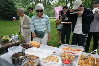 因为此次活动没有烧烤,所以很多校友带来自家做的精美食品和大家分享。首先,校友们边吃边聊,相互介绍。于是大家有机会知道了原来揭均教授是抗日名将孙立人将军的义子,也第一次见到了才获得安省注册建筑师资格证书的梁川校友。