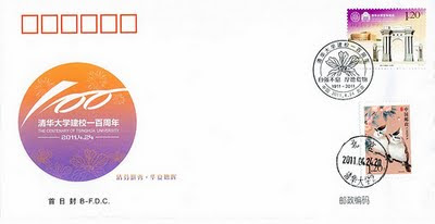 虽然没能回母校参加清华百年大庆,在北京的同学还是帮忙买了不少纪念品。今年暑假回北京,我把纪念品带回多伦多。这张首日封是其中最珍贵的了。(2011年4月24日发行当日,大学同学张磊亲自在清华大学邮局加盖当日邮戳。)要知道,2011年也是清华大学邮局建局一百周年。